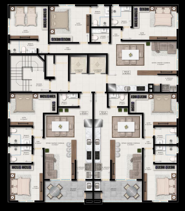 Apartamentos 2 e 3 Suítes, 2 e 3 vagas de Garagem em